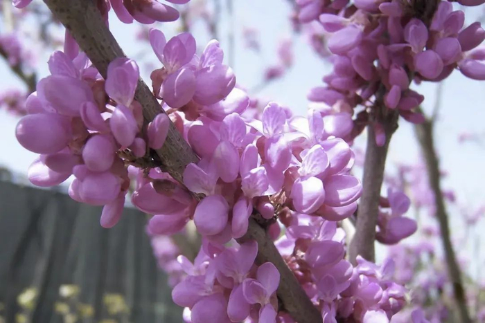 紫荆很好认,花紫色,花期为3~4月。紫荆的特色是直接长在树干上,密密麻麻开一大堆,一簇一簇的。没有叶子,花瓣很小。