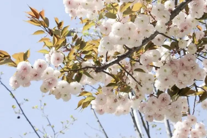 晚樱通常为重瓣,一般4月后开放,一团团的,缀满枝头。