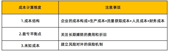 基于统计学的信念,当一个数据无法有效衡量,则该数字无法增长。同理,一家企业的成本不能有效计量,企业的盈利将无从谈起。分析一家企业的成本,可以从成本结构、盈亏平衡点、未知成本三个方面着手。