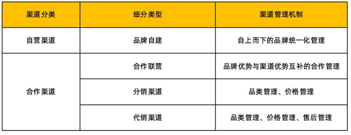 在【产品渠道体系】方面,可以近似理解与经典4P理论相通,渠道(Place)及促销手段(Promotion)撮合价格(Price)与用户(People)的供需匹配过程,即可拆分为渠道类型和渠道管理机制两个主要模块,关键分类详见下方表格,在此不展开。