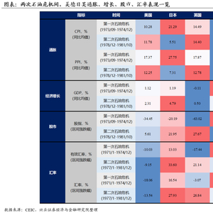两次石油危机对各国通胀的影响程度有所不同。两次石油危机对各国通胀的影响程度有所不同。而影响程度主要受到三方面因素的影响:1)对进口能源的依赖程度;2)能耗程度;3)汇率变化;5)国内其他资产价格。
