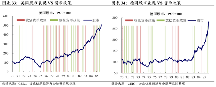 第二次石油危机中,各国股市受冲击程度小于第一次,英日表现相对更好。主要受到日本转型成功,节能减排效果开始显现;英国产油行业从无到有,度过银行危机“跌深反弹”的影响。