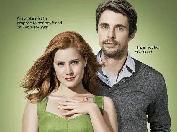 不知道是爱尔兰真有这么一个传统,还是仅存在于这部爱情电影里,说是在闰年2月29号这天,女孩可以向男孩求婚。为了能和相恋多年的男友杰里米结婚,女主安娜历经千辛万苦,终于赶在这四年一次的日子抵达了都柏林,不过她在旅途中遇见的另一个男人却成了整个故事的最大变数。