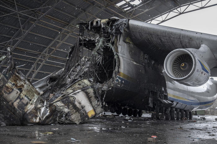 自俄乌冲突开始,安-225被停放于乌克兰基辅市附近的安东诺夫机场。有不少航空爱好者为安-225的安危感到担忧。如今,安-225停放的机库部分坍塌,飞机机身前半部分完全被毁,仅剩下3台发动机和残损的机身。