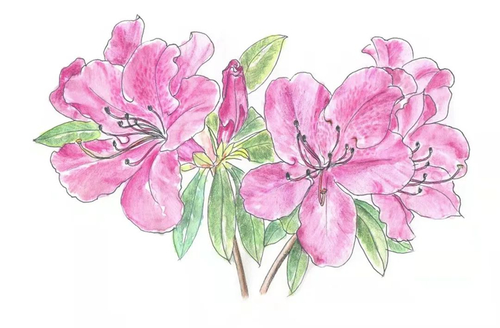 从清明起,锦绣杜鹃就陆续开花了,以玫红色花瓣居多。五裂花瓣靠上方的部分分布着很多深红色斑点,那是示蜜斑,它就像一个醒目的招牌,吸引能看到其上紫外光的蜜蜂来采蜜,当然它的目的是希望食客顺手帮它传个花粉,以完成繁殖大业。