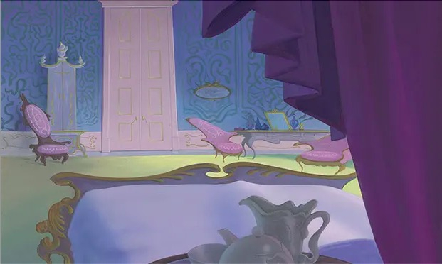 在某种程度上,静止中运动的意向也是洛可可艺术的精髓。无生命的静物在迪士尼动画中跳跃、舞动,法式的天鹅绒沙发被赋予了相拥的手臂和轻巧的双脚,镀金烛台成了《美女与野兽》的管家,类似《灰姑娘》、《睡美人》等寓言故事,也起源于法国。