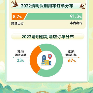 同程旅行大数据显示,2022年清明小长假的酒店订单中,本地酒店订单占比67%。而在平台的用车订单中,本地出行订单占比高达91.3%。与此同时,人们预订机票、酒店、景区等各类旅游产品的时间周期也进一步缩短,数据显示,清明小长假提前一周内预订机票的用户占比超过70%,酒店平均预订周期缩短至1.6天,而景区门票当天预订的占比超过8成。