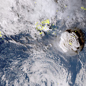 1月15日,日本气象卫星“海马8号”拍摄的汤加海底火山卫星图像