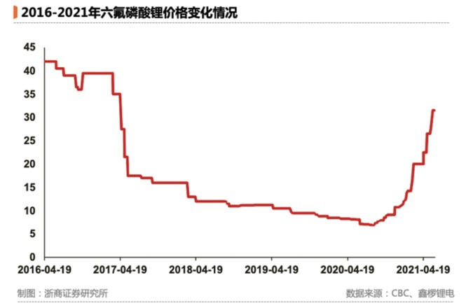 2019年受部分车型购置补贴退坡影响,下游需求出现明显下滑,电解液供过于求,业内掀起了“价格战”,六氟磷酸锂的价格更是从2016年的42万元/吨下滑至2019年底的不足10万元/吨,导致公司归母净利同比大跌超90%。