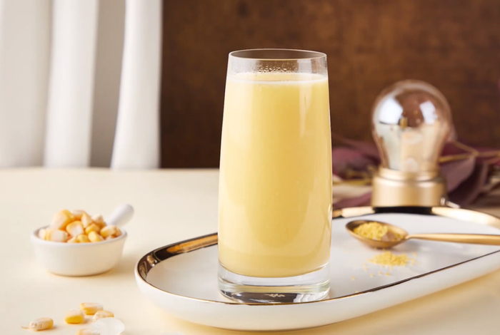 自己diy了一下玉米汁,倒出来,汁儿顺滑又细腻!