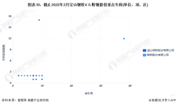 (6)重点专利布局对比:鞍钢股份重点布局的专利被引用次数较多