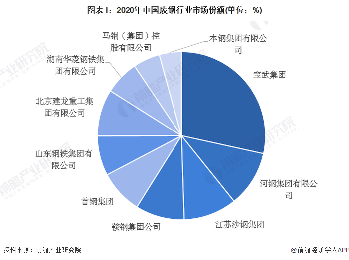 1、中国废钢竞争格局:宝山钢铁和鞍钢股份为中国龙头企业
