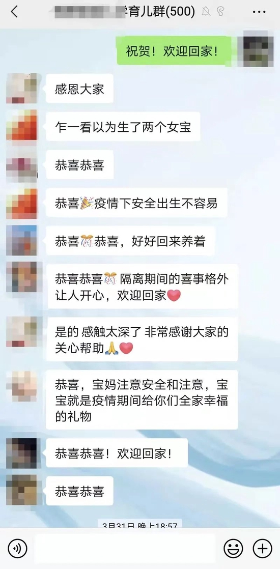 求助帖才发出没一会儿,就有人告诉我,轮椅从居委借到了。我所在楼栋的楼组长第一时间安排志愿者把我们接回了家。邻居们看到消息,也纷纷向我表达关心和祝贺。