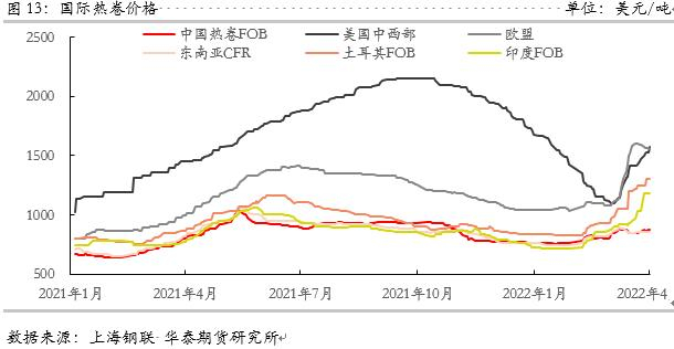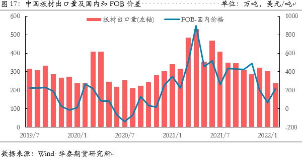 而中国国内受到房地产和疫情影响,钢材消费比较低迷,钢价上涨幅度大大低于全球其他地区上涨幅度,从而导致国内外钢材价差扩大,钢材出口通道打开。