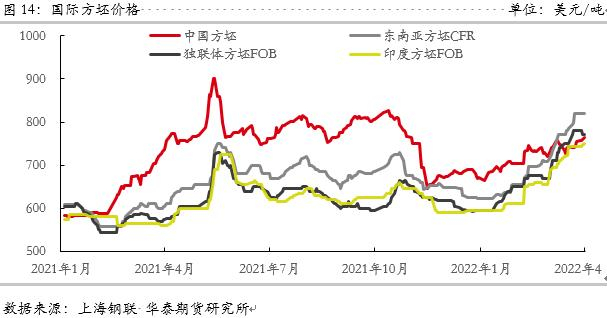 另外,过去两年,由于国内钢坯价格高,导致中国每个月都要进口100-150万吨钢坯。随着海外钢坯价格大幅上涨,我们预计,随后的时间里,中国的钢坯进口将完全停滞。