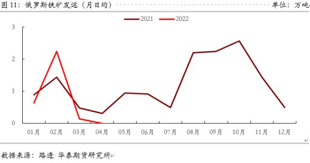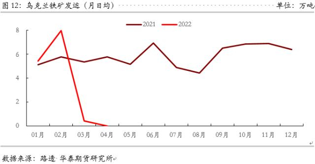 如果仅考虑生铁、钢坯、直接还原铁、钢材和废钢的出口量,俄乌每年向其他国家和地区出口6000万吨左右,折合每月500万吨。如果战争影响80%的出口,则相当于每月影响供给400万吨。