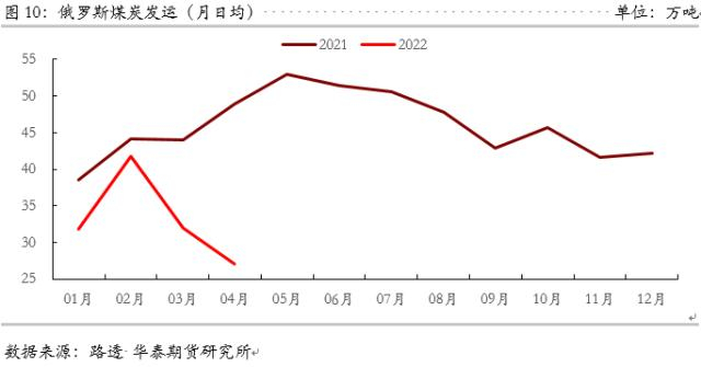 从俄罗斯和乌克兰煤炭和铁矿的发运数据来看,上述两种商品的发运在3月份大幅下降,可见战争的影响已经开始体现。从俄罗斯煤炭发运数据来看,3月份环比下降了24%,而铁矿发运下降了94%。同期,乌克兰铁矿发运环比2月份下降了95%。可见,俄乌大宗商品出口受到了较大的影响。