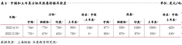 从钢坯出口种类来看,俄罗斯出口钢坯中板坯和方坯比例基本相当,而乌克兰出口的板坯略高于方坯。从影响来看,俄乌钢坯出口一旦受阻,则主要影响到中国台湾及欧洲的意大利、土耳其等国。