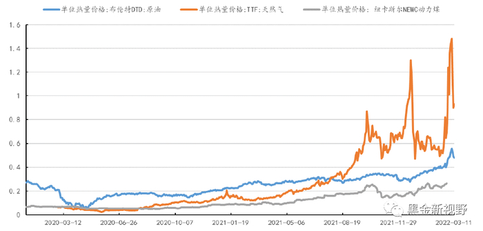 核心提要:石油、天然气、煤炭单位热量价格波动具有较强的一致性,尤其是石油和煤炭。2021年8月以来,在供给紧缺和需求旺盛的双重作用下,全球天然气价格一路飙升,进而出现煤炭、石油的紧张,并导致天然气、煤炭、原油价格连创新高。2022年2月以来,受俄乌局势影响,全球能源价格持续暴涨。