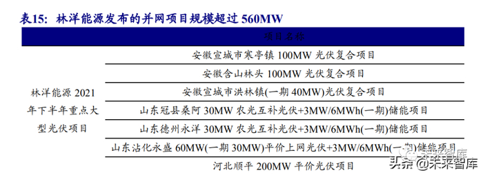 (4)林洋能源和江苏华能签署了投资合作框架协 议,双方将通过设立合资公司在启东建设80MW/160MWh的储能共享电站,预计2022 年 6 月 30 日前全容量并网运行;(5)在林洋近期和北投能源签订的协议框架中,为 配合新能源建设及用户测储能,双方拟共同合作开发 500MW/1GWh 磷酸铁锂储能项 目。公司与业内龙头在储能全产业链上深化合作、优势互补,打造公司储能电芯和系 统集成方面的核心竞争力,有望加速公司在储能领域的业务拓展,在储能市场的新 一轮增长中抢占先机。