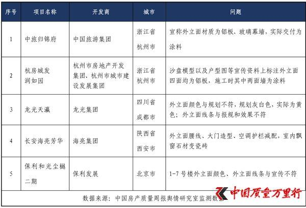 重点投诉问题:外立面与宣传不符、与施工图纸不符