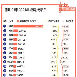 四川21市2021年经济成绩单:6城人均GDP超1万美元