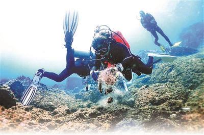 据王淼介绍,打捞海洋垃圾就是海洋公民科学项目的重要内容,“无境深蓝”资助全国多个潜水员团队在不同省份的水下点位每个月定期进行一次垃圾调查和垃圾清理,每年大约开展150至200场活动。海洋公民科学项目的另外两项内容是与科研团队合作针对定点区域的珊瑚礁分布和健康状况进行调查,教潜水员如何清理有毒、带刺的海星。