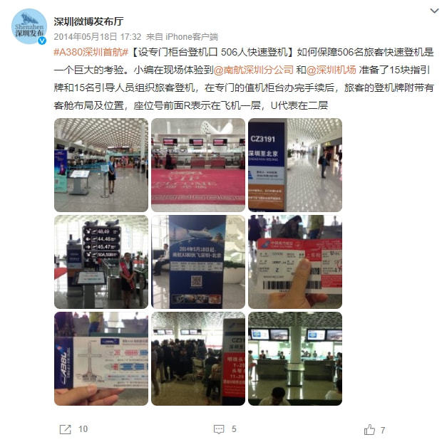 2011年10月17日,A380飞机正式执行中国大陆第一个载客飞行任务,其所属的南航成为了全球第七家运营空客A380的航空公司,也是中国大陆唯一拥有空客A380的航空公司。当时,南航的A380主要执飞广州到北京等国内航线。