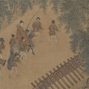 元《居家必用事类全集》中记有天水碧笺的制作方法:“粉青笺:与天水碧颜色同,用靛一斤淘净,澄去灰,入银粉,煮浆调匀,色淡为佳,刷纸槌法同前。”天水碧与粉青应该在色相上极为相近,《韩熙载夜宴图》中乐伎身上浅碧服色,应该就是当年建康城里流行的天水碧。