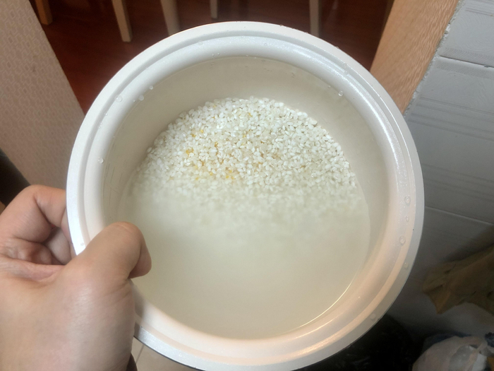 1、准备材料,米饭加水放电饭煲内煮熟。(不要煮的太烂了哦,也可以蒸熟,不过煮熟更方便,而且口感没什么影响)