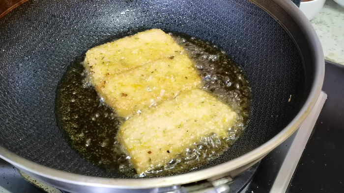 8、煎至两面金黄即可,也可以用炸的方式,不过搭配一口好的不粘锅来煎会更省油更健康一些。
