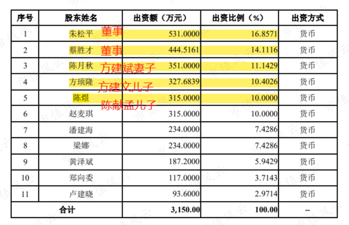 陈献孟、蒋友安、方建文和方建斌是意华股份当时的实控人,而陈献孟的儿子陈煜、方建文的儿子方顼隆、方建斌的妻子陈月秋,以及董事朱松平和蔡胜才,合计以不到2,000万元取得了意华新能源62%的股权。