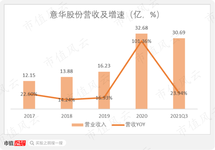 2020年,并购完成次年,意华股份实现营收32.68亿,同比上升101.36%,更加夸张的是,公司实现净利润1.8亿,相比2019年翻了两番。
