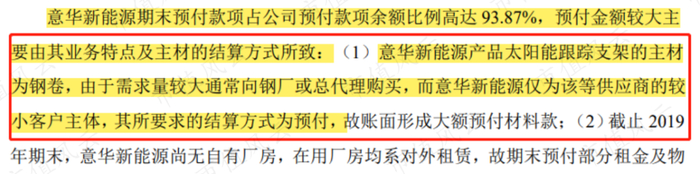 其次,由于太阳能支架主材是钢卷,而意华新能源只是供应商的较小客户,因此公司只能以预付的方式来结算。