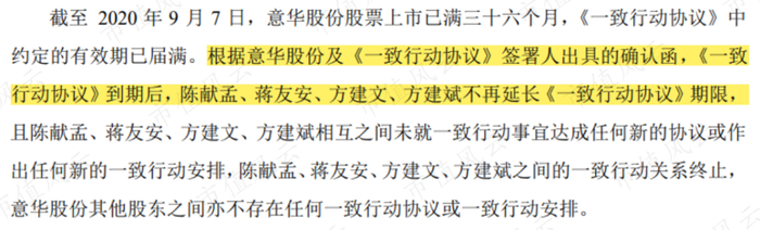 上市公司后脚就在9月9日就宣布,原4位实控人一致行动协议期限届满,不再延长。