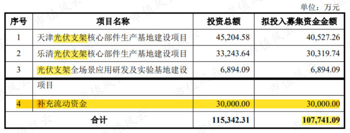 2022年1月7日,意华股份公告拟定增10.77亿,其中7.77亿均用于光伏支架的扩产与研发,另外3亿用于补充流动资金。