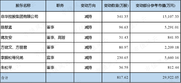 果不其然,解禁后至今,上市公司的原实控人陈献孟、蒋友安、方建文(包括其姐方丽君)以及控股股东意华集团累计已减持套现2.34亿。