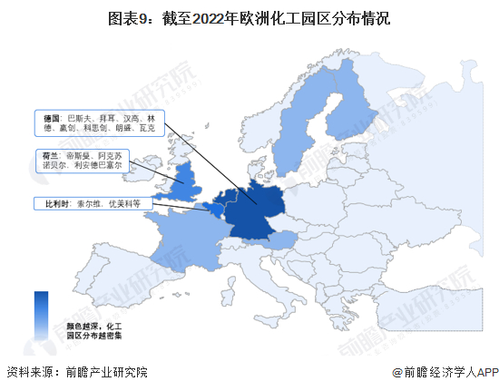 汇总主要的化工园区分布情况,欧洲化工园区主要集中在德国、荷兰和比利时这三个国家,德国化工园区分布最为密集,对俄罗斯能源依赖程度相应也是最高的,约为40%。