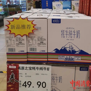 超市工作人员介绍称:“这款牦牛纯奶价格实惠,是送礼首选。”