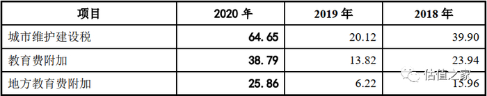 即营业收入、营业利润都保持正增长,然而各项税费附加在2018年-2019年降低接近一半,而2019年-2020年有增长3倍左右,这样的“过山车”式税收剧烈波动与营业收入稳定增长的趋势明显不具备匹配性。