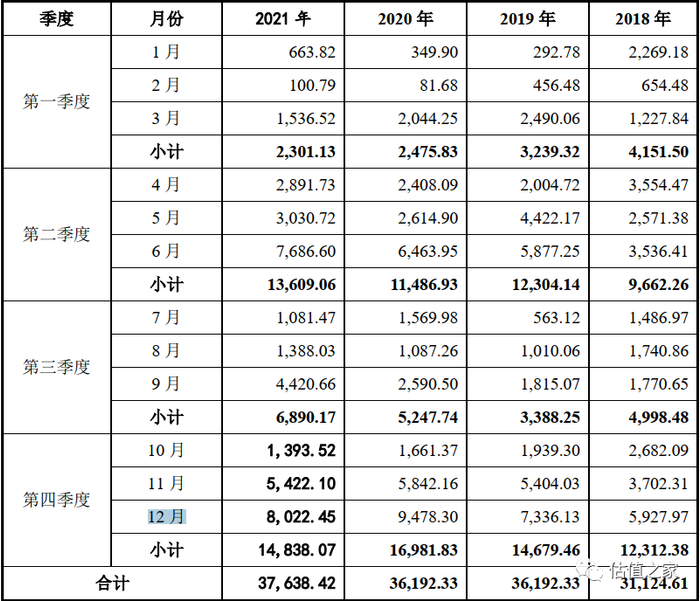 估值之家发现,发行人各报告期11月、12月的收入均大幅高于其他月份,详见下表: