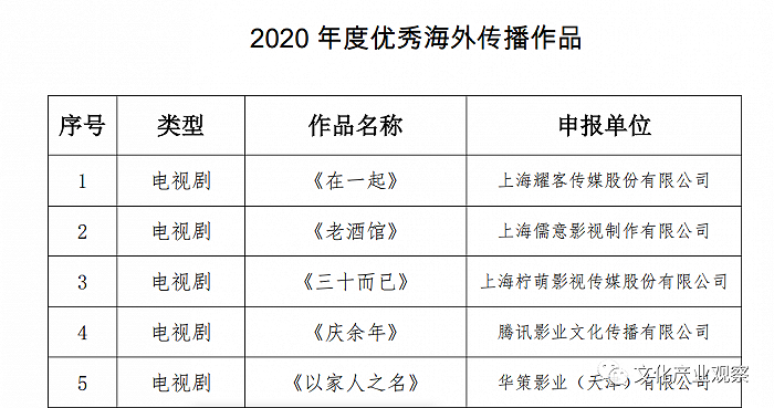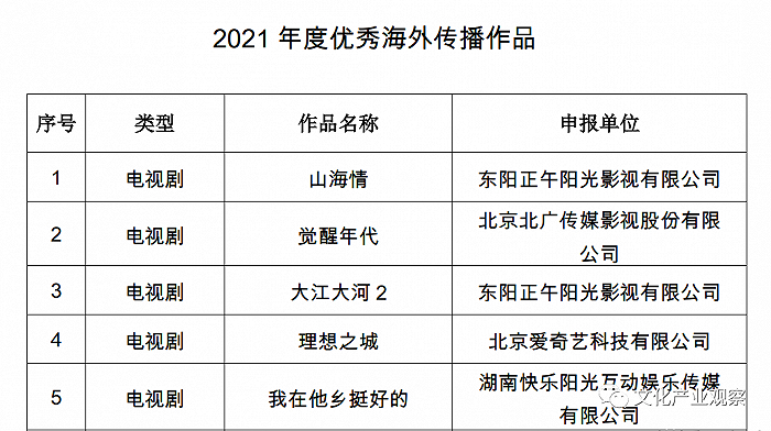 从国家广电总局评选的优秀海外传播电视剧名单里可以看出,出海的剧作是必定经过良心创作,服化、剧情、演员、后期以及最重要的作品主题都是高质量的产出。