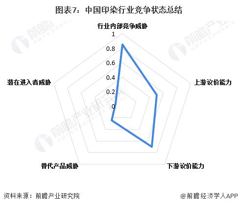 从五力竞争模型角度分析,印染产品在颜色、图案等方面上满足消费者对印染纺织品的感官需求,具有很高的性价比,异种产品替代威胁较小;同种产品中,印染产品将朝着智能化、功能化及环保化的方向发展,技术更新将加快,同种产品替代威胁较大。产业链上游主要为胚布、染料、印染助剂等企业,整体而言上游议价能力适中。印染行业企业数量众多,市场集中度较低,且产品同质化程度较高,下游购买者对印染企业的选择较多,转换成本相对较小。下游议价能力较强。由于环保、耗能等原因,目前国内相关监管部门对印染行业的进入进行了严格监管,形成了较高的政策壁垒;除此之外,印染行业也存在较高的技术壁垒。印染行业市场集中度仍然较低,规模以上印染企业以私营企业为主,市场较为分散,竞争激烈。