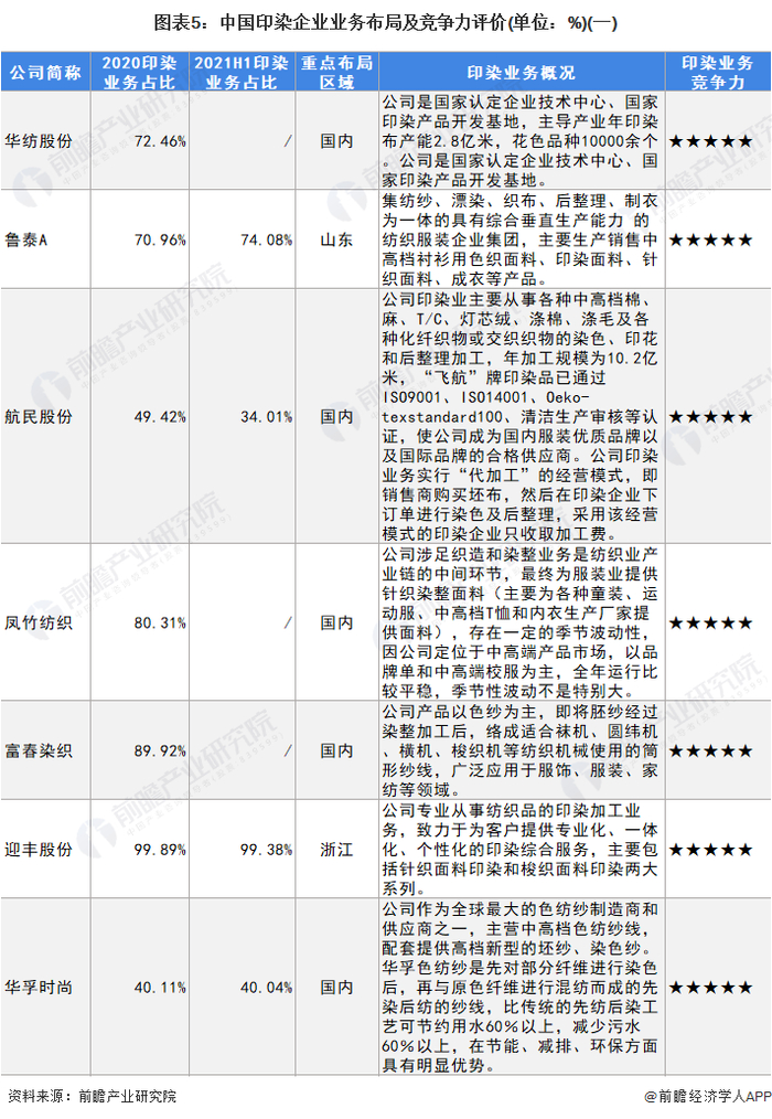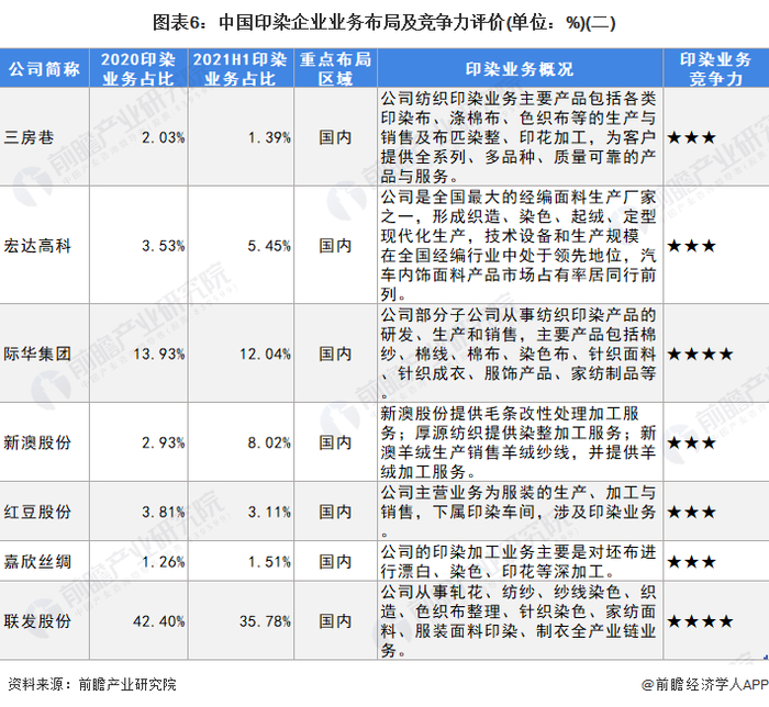 从我国印染行业上市公司业务布局状况来看,大多企业实行了产业链综合布局,业务涉及印染行业上、中、下游,有利于发挥产业链协同效应,更加有助于企业提高自身竞争力,降低成本、提高利润水平。目前,印染上市企业主要业务布局集中在国内,在华东地区布局更加集中,部分企业涉及对外业务。