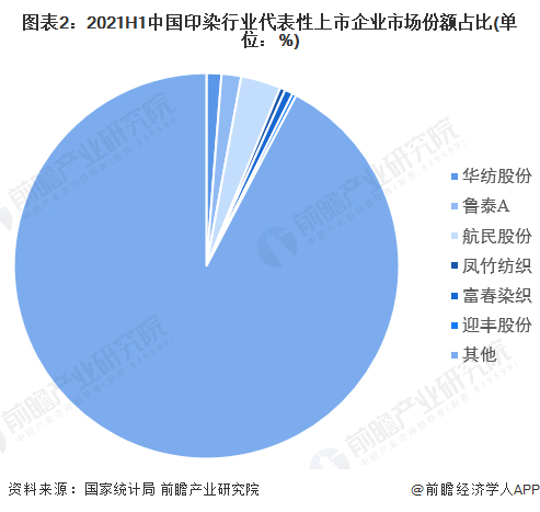 根据国家统计局数据,2021年上半年,全国1550家规模以上印染企业实现营业收入1351.20亿元,同比增长27.02%。以华纺股份、鲁泰A、航民股份、凤竹纺织、富春染织、迎丰股份为代表的六家印染行业代表性上市企业,市场份额占比不到8%。