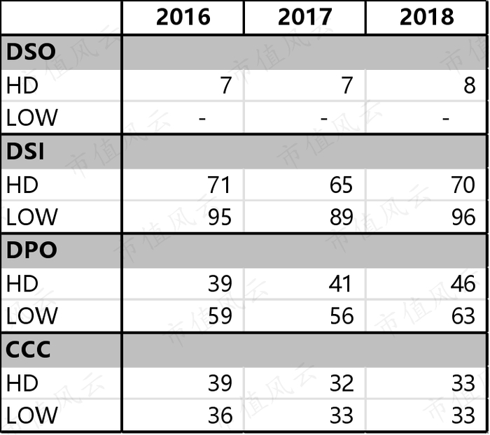 两家公司的运营效率均表现得十分优秀,现金循环周期近几年均保持在30~40天之间。