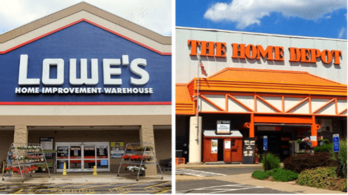 两家在北美市场处于直接竞争的关系,现阶段家得宝完成了对劳氏的碾压。