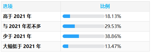 60%左右的货代对2022年持业务收入悲观态度,25%左右的货代认为变化不大,15%左右的货代认为公司收入会增加。