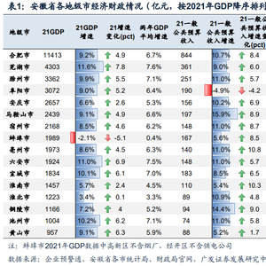 广发固收 | 2022年区域经济盘点系列之三:安徽54个区县2021年经济财政债务大盘点