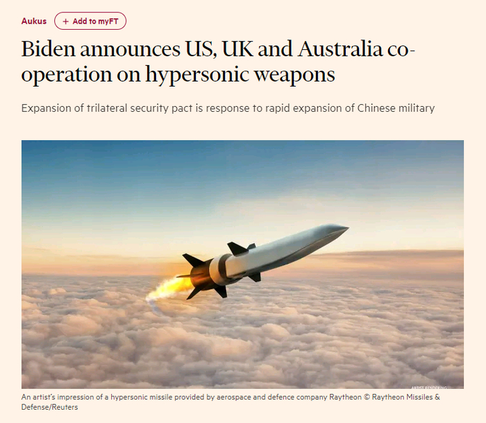 本文转载自微信公众号“枢密院十号”(ID:gh_9c8255618a4d),原文首发于2022年4月6日,原标题为《用高超吓唬中国?美英澳“失败者联盟”没资格!》,不代表瞭望智库观点。
